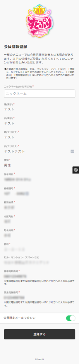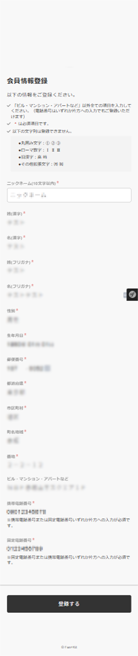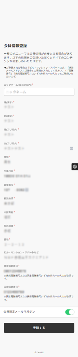 会員情報の登録をお願いします。