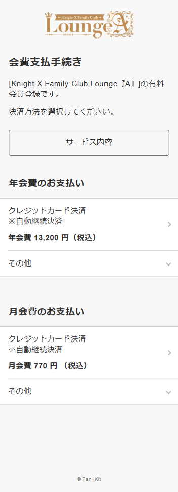 ❝旧Lounge『A』❞の会員期限が残っていても、❝新Lounge『A』❞への課金登録が必要です。